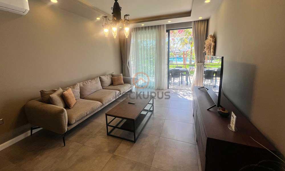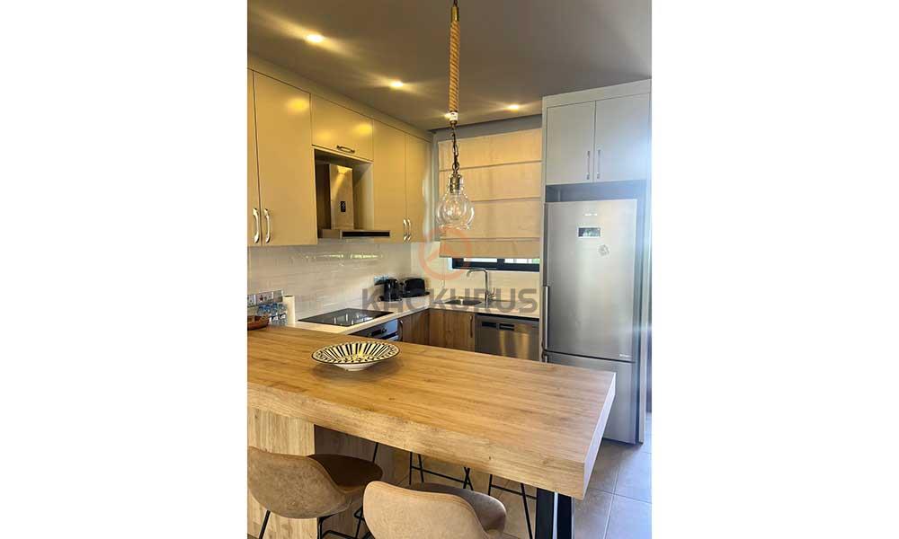 Nuestro apartamento de 2+1 en la planta baja a la venta tiene 104m2 y ofrece vistas panorámicas tanto de las montañas de Beş Parmak como del mar Mediterráneo, con una vista sin obstáculos hacia el norte, en dirección al Mediterráneo.