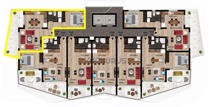 Con un total de 416 viviendas, este proyecto ofrece un hotel de alta calidad, centro SPA con baño turco, alquiler de vehículos, centro de atención al cliente y mucho más.