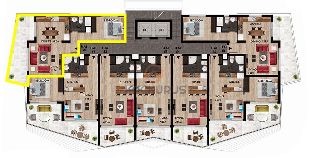 En el lujoso complejo que se integra con la belleza de la famosa playa Long Beach de İskele, reserva ya tu apartamento 1+1 de 78m2.