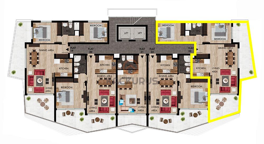 APPARTEMENT DE LUXE 2+1 À VENDRE À LONG BEACH ISKELE (114 M²)