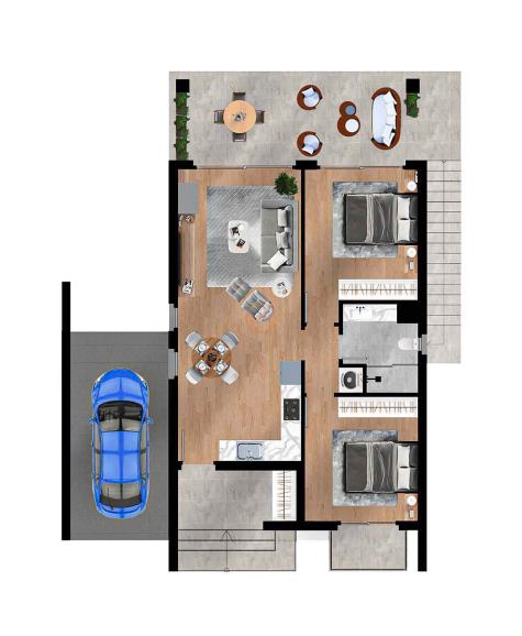 - Zeminde Yarı Açık Pergola Teras