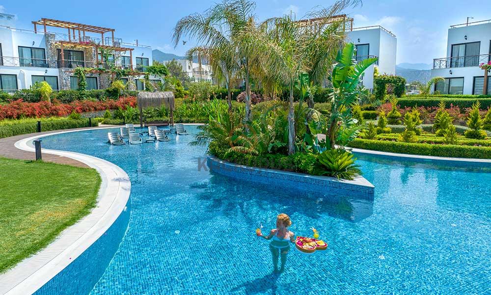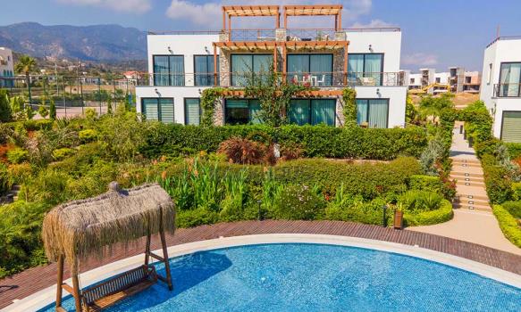 Located in one of the most popular villages of Northern Cyprus, Esentepe, this unique residential project consisting of luxury villas and modern apartments stands out with its distinctive architecture. This rapidly growing area offers ideal opportunities for both living and investment.