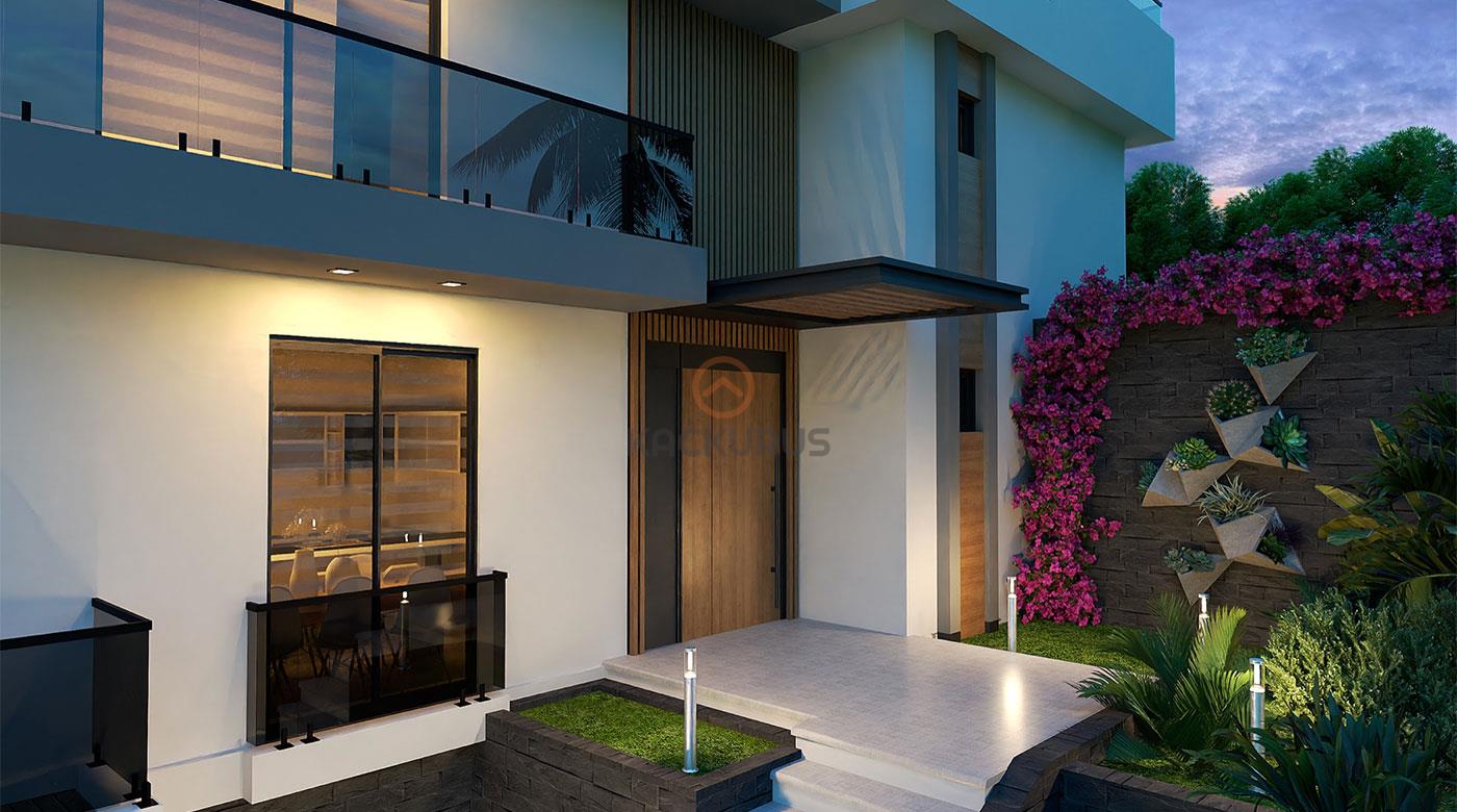 Modern dış cephe tasarımıyla dikkat çeken bu yapılar, iç mekanlardaki zarafet ve fonksiyonellikle bir araya gelerek Girne’de benzersiz bir villa konsepti sunuyor.
