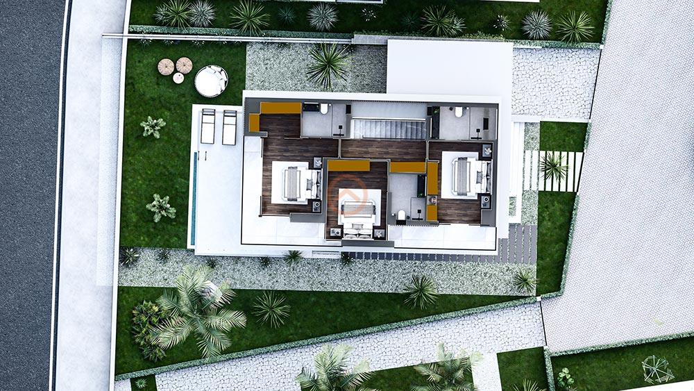 Satılık Villamızda 3 Yatak Odası mevcut olup, tüm yatak odaları Ebeveyn Banyolu'dur. Talep üzerine villaya özel havuz yapılabilmektedir.